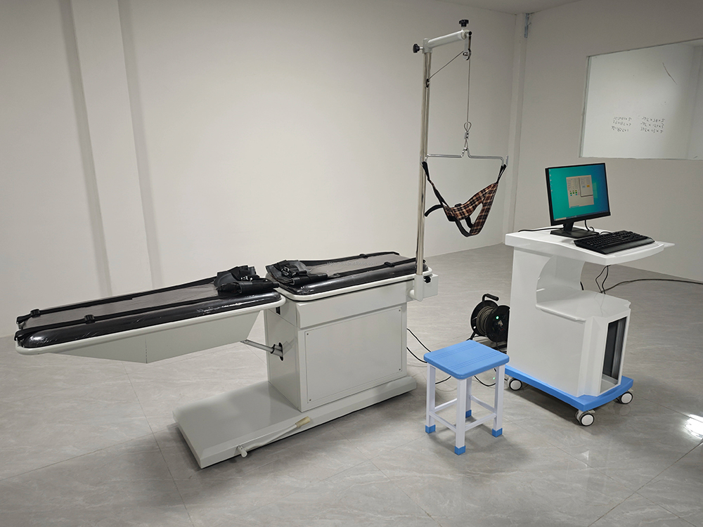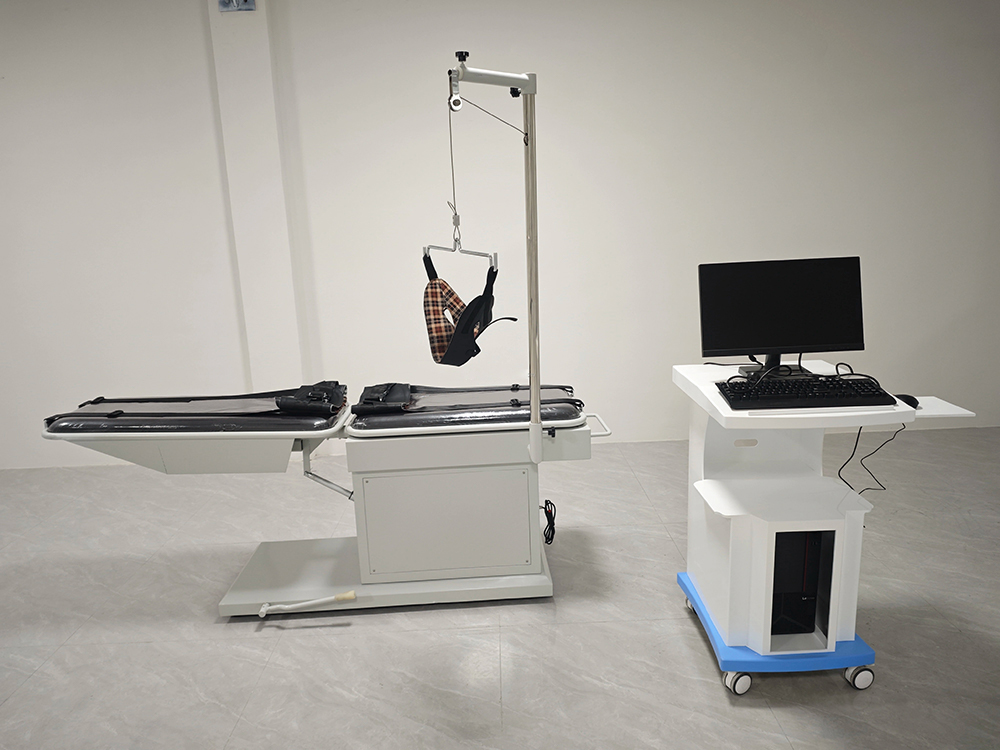 1. Fungsi traksi: Traksi lumbal, langkah traksi maksimum 200 mm, gaya traksi maksimum 970N;