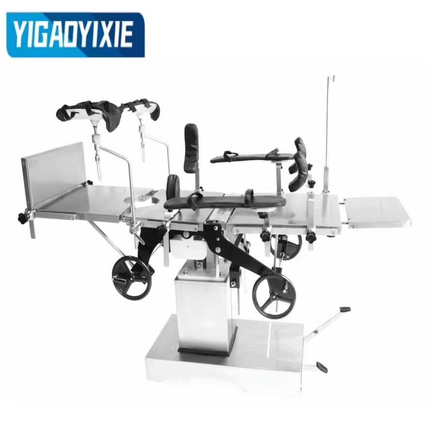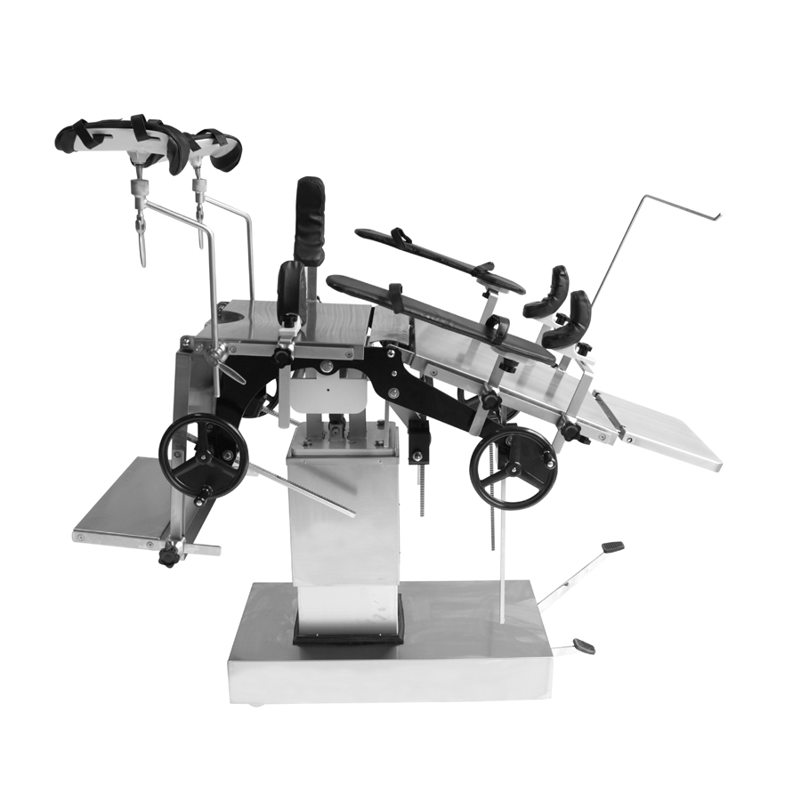 Meja operasi hidrolik baja tahan karat YGS3001 adalah perangkat medis berkinerja tinggi yang dirancang untuk menopang pasien selama operasi dan banyak digunakan dalam berbagai operasi bedah. Meja operasi terdiri dari sandaran kepala, papan belakang, papan pinggang, papan pinggul, dan papan kaki integral, yang dapat disesuaikan secara fleksibel untuk memenuhi kebutuhan berbagai posisi bedah. Sistem pengangkatan hidrauliknya menggerakkan pompa oli hidraulik melalui pedal kaki, yang mudah dioperasikan, stabil, dan tidak bersuara, serta cocok untuk pengoperasian yang sering memerlukan penyesuaian ketinggian bak. Lipatan ke atas dan ke bawah, kemiringan depan dan belakang, kemiringan kiri dan kanan pada papan belakang dan papan kaki dapat dikontrol secara tepat dengan roda gigi engkol tangan, roda gigi cacing, dan sistem rak. Kepala tempat tidur dirancang dengan kunci spiral, dan papan pinggang disesuaikan dengan engkol tangan untuk memastikan stabilitas dan keamanan. Bagian atas meja operasi terbuat dari baja karbon berlapis semprot, yang tahan lama dan mudah dibersihkan. Cangkang dasar dan kolom terbuat dari baja tahan karat, yang tahan korosi dan anti-oksidasi, memastikan stabilitas dan tampilan peralatan untuk penggunaan jangka panjang.