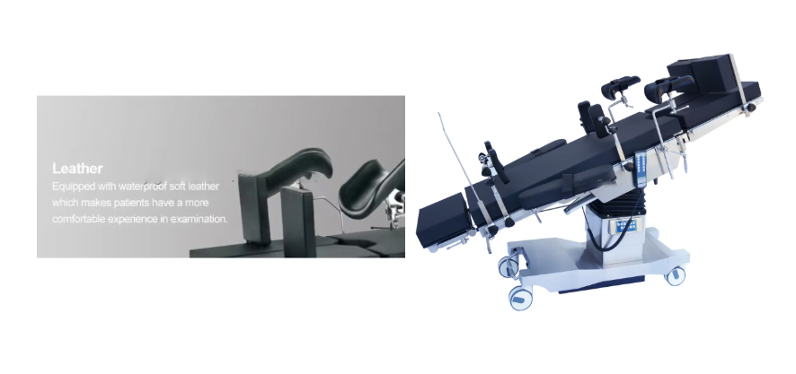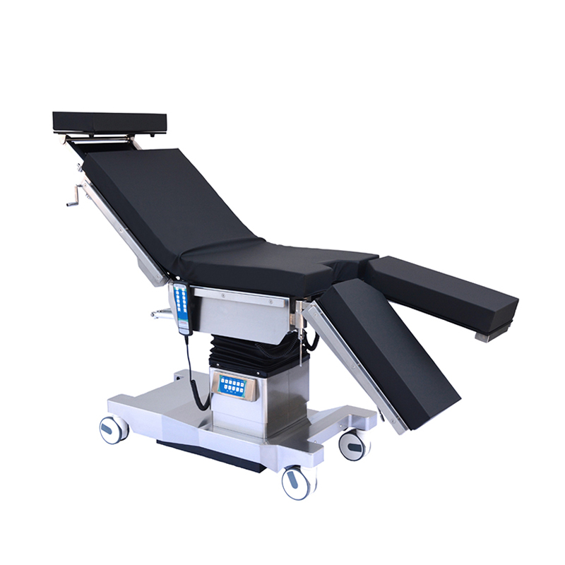 Tabel ini dibagi menjadi empat bagian: kepala, punggung (termasuk jembatan pinggang), pinggul, dan kaki. Bagian atas meja terbuat dari bahan komposit berkekuatan tinggi dengan transmisi sinar-X; Dapat dipadukan dengan C-arm untuk mengambil foto.